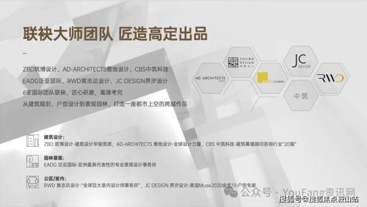 🔱大师联袂建筑设计:ZBD筑博设计-建筑设计甲级资质AD ARCHITECTS傲地设计-全球设计力量CBS中筑科技-建筑幕墙顾问咨询行业“20强”园林景观:EADG泛亚国际-亚洲代表性的专业景观设计事务所公区/室内:RWD黄志达设计-全球百大室内设计师事务所JC DESIGN界汐设计-美国Muse2020金奖/小户型专家