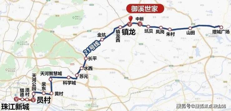 距离地铁21号线中新站(约1000米)、地铁14/21号线镇龙站(约1000米),快线3站到天河,7站到珠江新城。
