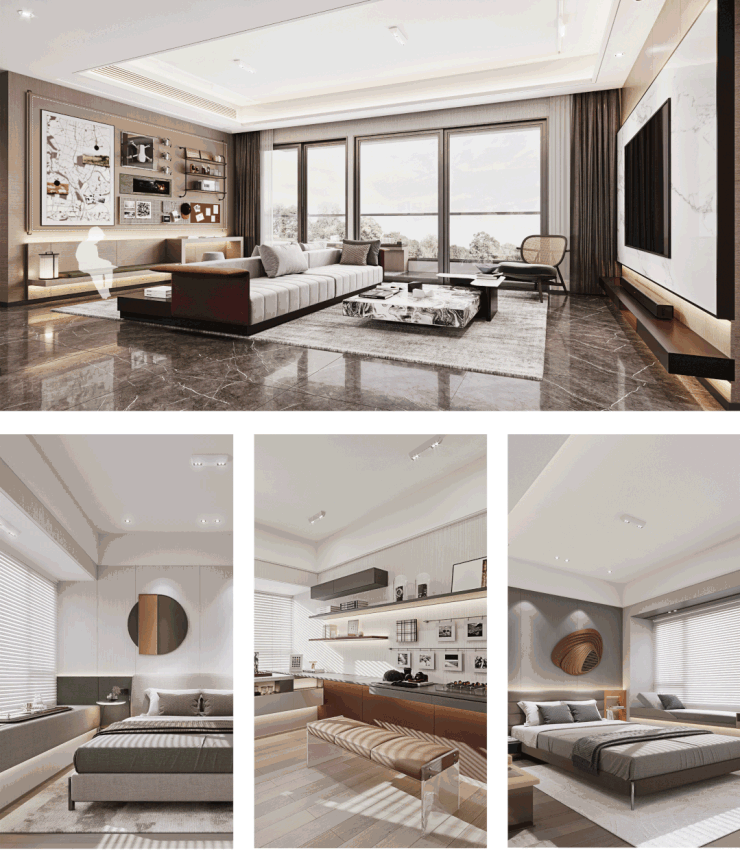 主卧则采用了套间设计,不仅空间感极佳,更配备了独立的卫生间和衣帽间,为主人提供了极致的私密与便利。其空间尺度甚至可与120多平的主卧相媲美,让人在繁忙的都市生活中也能享受到一份宁静与奢华。
