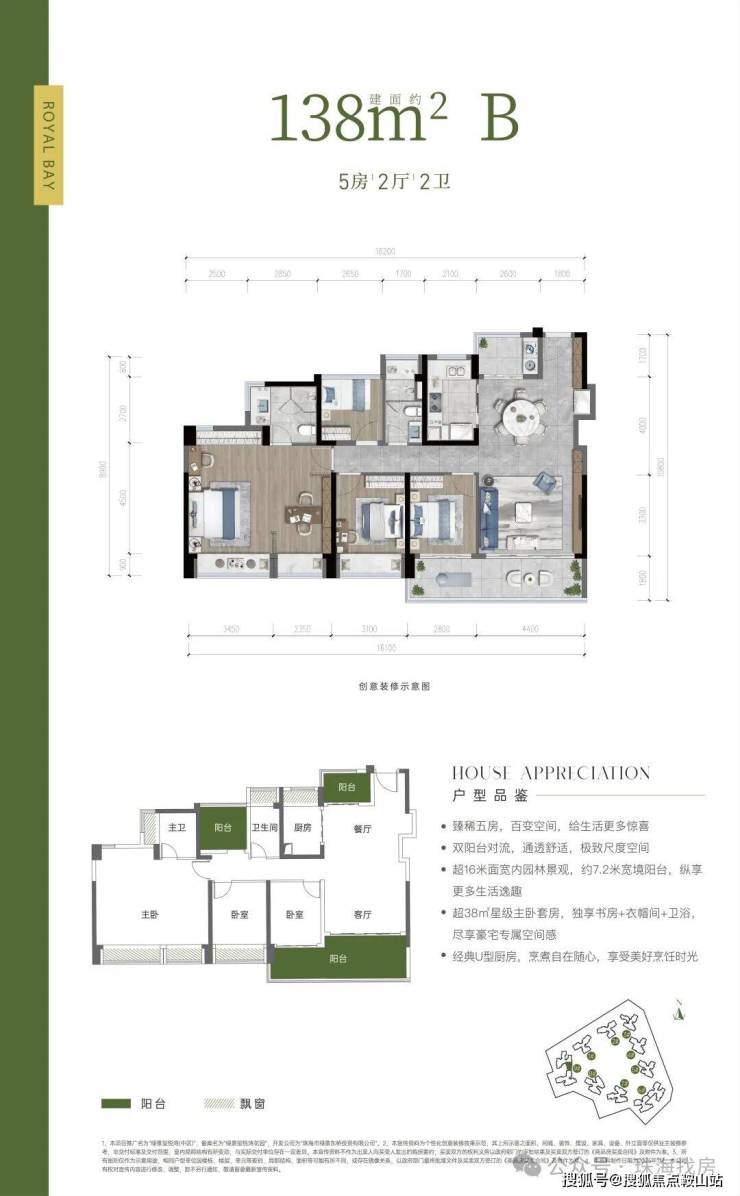 户型亮点:约 38 ㎡星级主卧套间,奢享 270°环幕飘窗、酒店式衣帽间+主卫