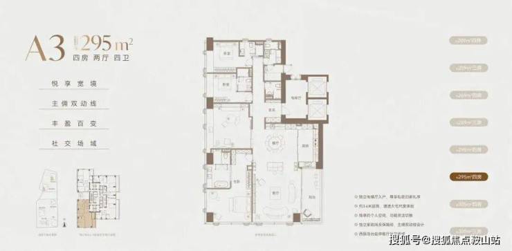 建面约295㎡户型,有2种方案