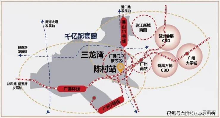 三龙湾前沿 临广第一站顺德陈村,全域纳入三龙湾的核心发展区域 ,与广州南站仅一河之隔;