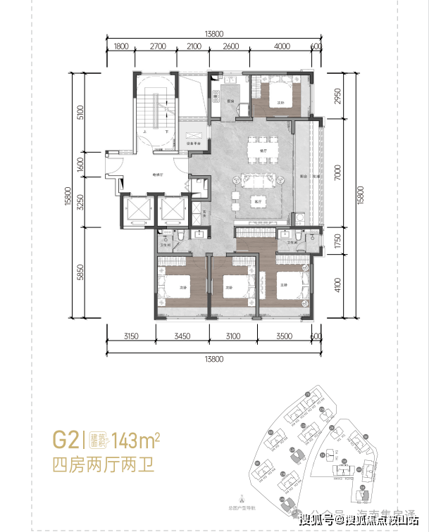 142㎡:四房两厅两卫 14#送阳台11㎡
