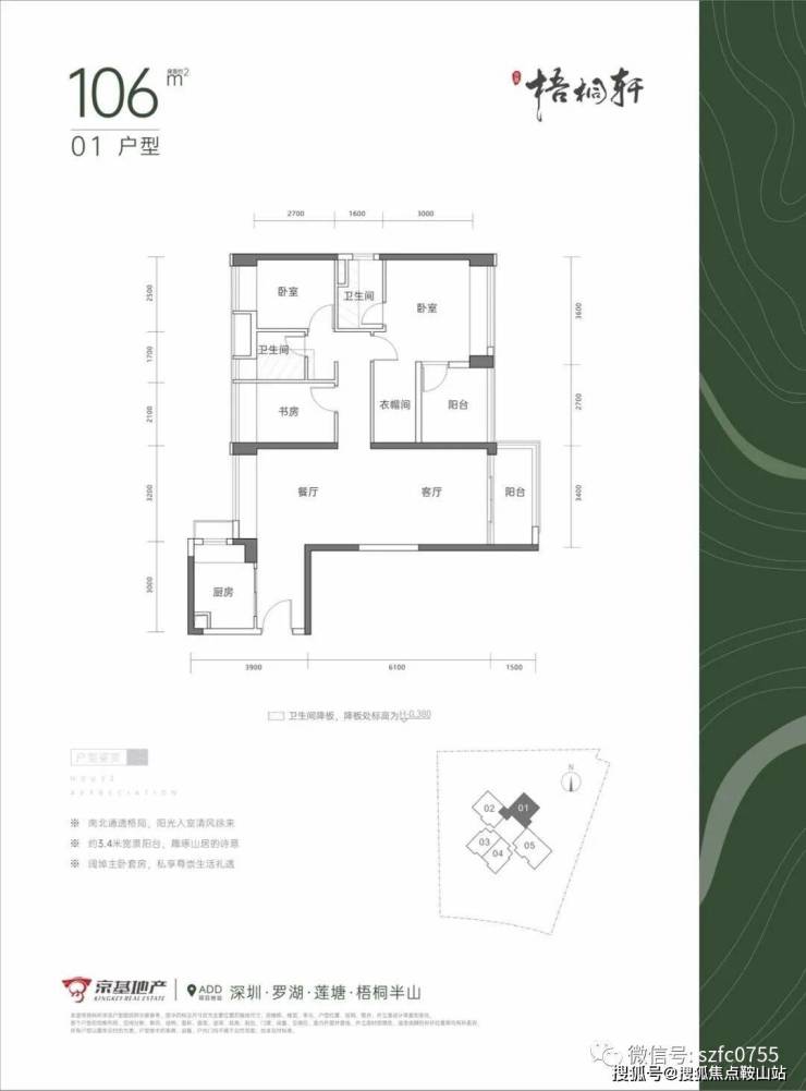 3、精著产品:打造为梧桐半山低密纯住区,约3.31低容积率,约1:1臻贵车位比,2梯5户舒适梯户比,全南朝向、全明采光设计,户型方正实用,高使用率。