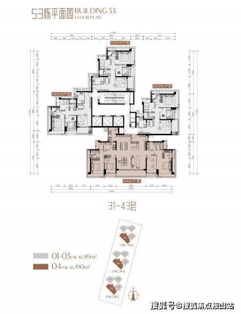 1️⃣58栋77套:89㎡3房,190㎡4房