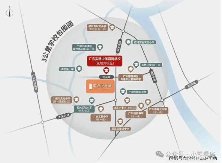 广东实验中学荔湾学校花地湾校区:“省实系”优质教育,离浣花里仅一路之隔,2023年9月已正式开学,设有54个班;