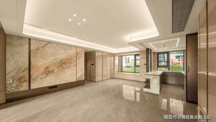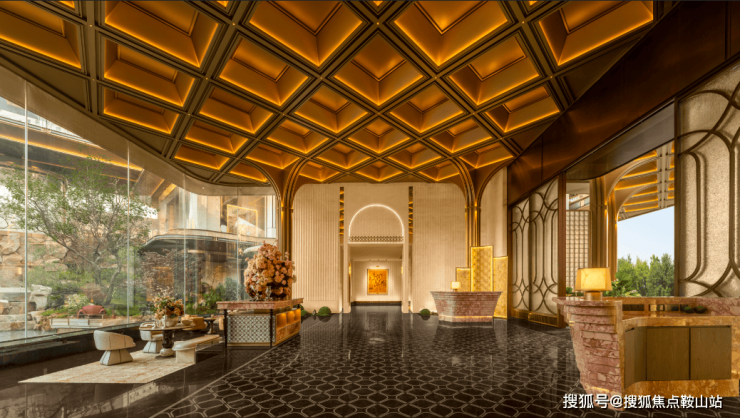 首先映入眼帘的是近51米酒店式礼仪门厅开启归家序章,20根7米高香槟金立柱彰显非凡气度,给到了前来的参观者直接视觉冲击,仿佛瞬间被带入一个奢华而宁静的专属领域。