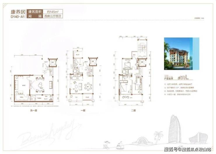 D140-A1、A2、A3、B1户型:约145㎡,4房两3厅3卫