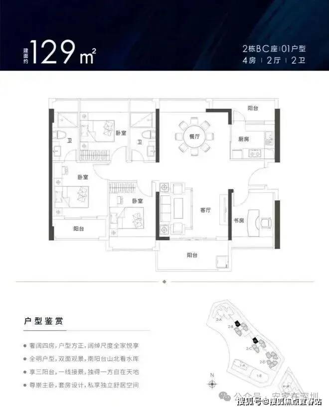 项目定位为“刚需首置物业”,主打中小户型住宅及公寓产品,住宅面积段为79-129㎡,公寓面积47-62㎡,设计强调高实用率与功能分区合理性。其核心优势包括准现房交付(部分楼栋2023年竣工)、立体园林景观、交通及旧改规划红利等。