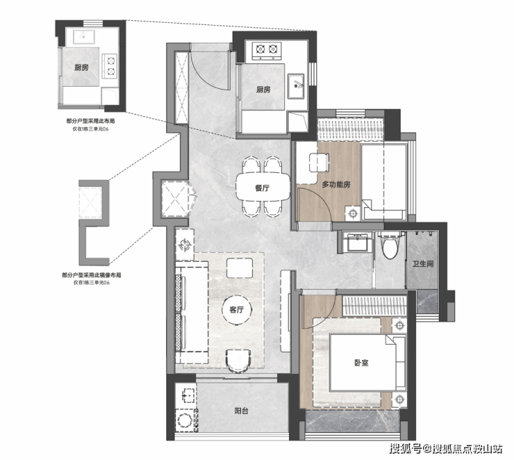 建面约83-85㎡3房2厅2卫,是项目的主力户型。对生活品质有更高追求的朋友,可以首选这个户型。