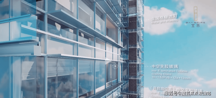 建筑的南北侧,在光洁的外立面层间位置,结合超白玻璃和铝板凹槽设计;西侧采用遮阳格栅设计,建筑的肌理感大为丰富。
