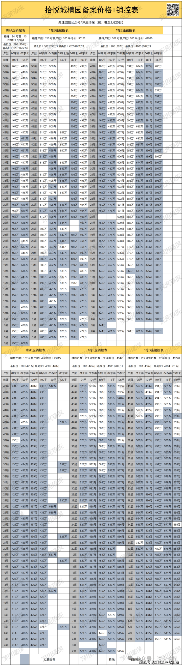 下面罗sir还特意做了份拾悦城楠园全套的备案价格+销控表,可以作为参考,如果想要具体的折后价格表以及后期最新的销控表,可以加罗sir微信联系。