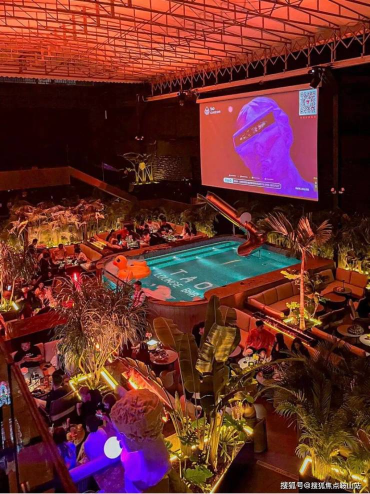 三亚首家自带泳池的酒吧,店内整体装修都以古希腊和赛博朋克元素相结合,古罗马雕塑、绿植、蒸汽波等元素交汇,整个充满艺术气息。