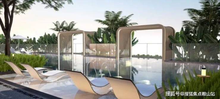 社区内规划了度假风泳池,包括成人泳池、儿童池、配置休闲躺椅区、景观廊架、按摩池等功能区。
