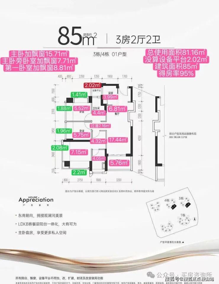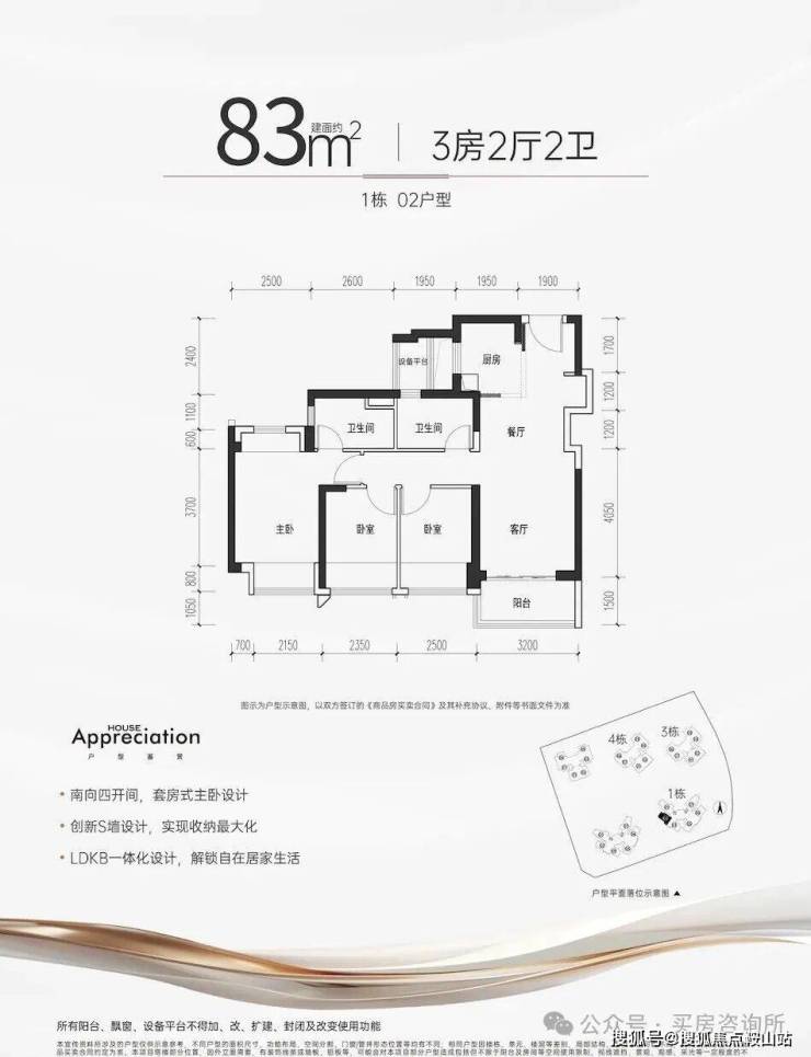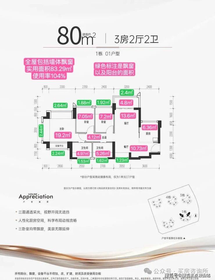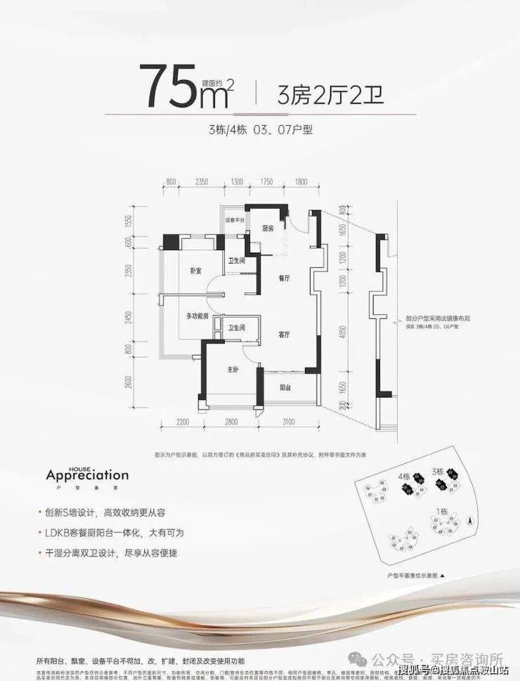 【户型面积】约75-85㎡3房2卫,约94-105㎡4房2卫