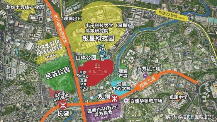 两中心:观澜体育中心(在建中),禾玺文化活动中心(规划中,暂命名)