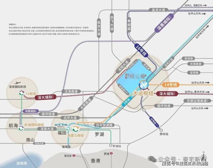 直连大运枢纽,东部唯一集城际、快线、普线于一体的交通枢纽,四轨交汇,3/14/16号线(已开通)和深大城际 (建设中),约28分钟福田岗厦北,半小时宝安机场南山前海。