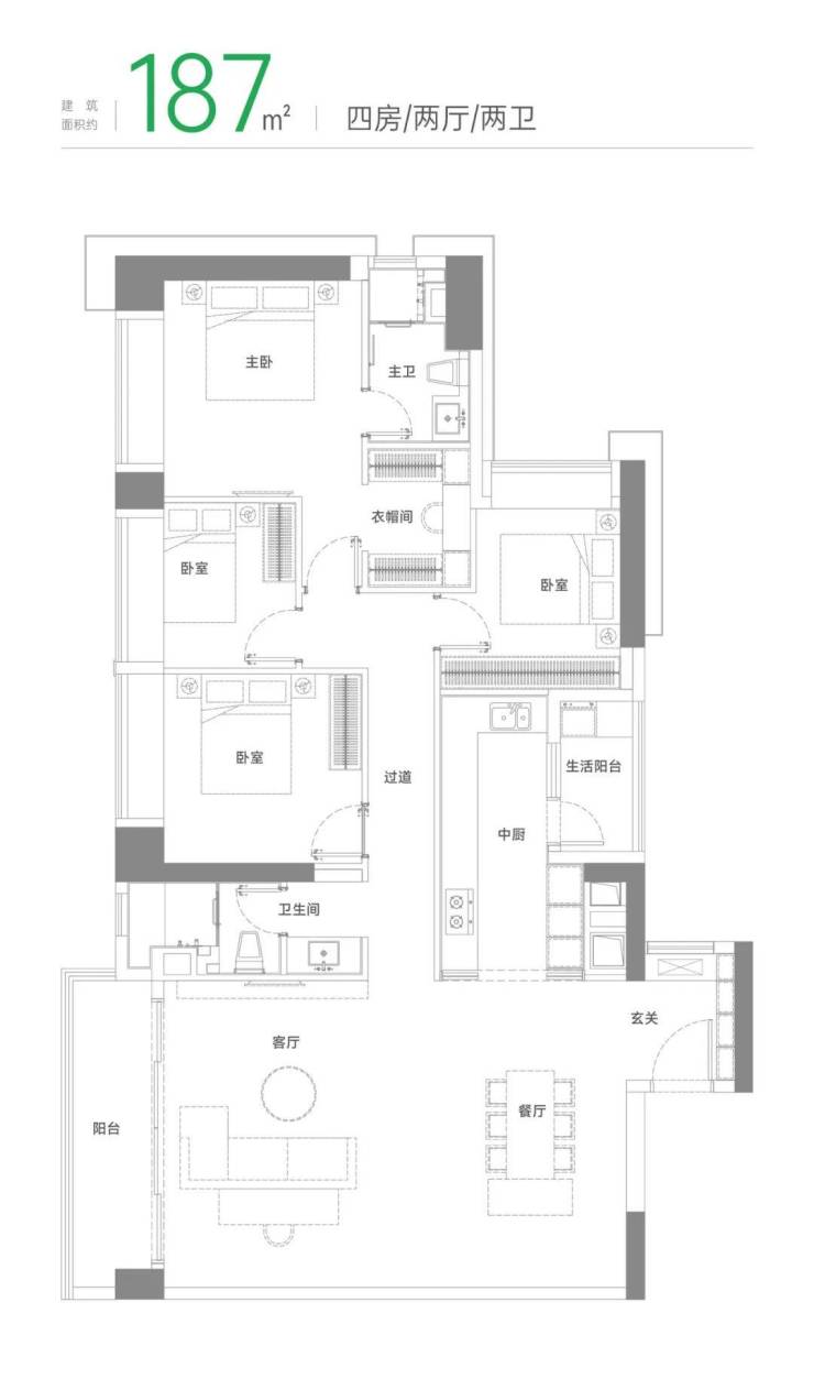 现在售产品建筑面积约110-187㎡3-4房大师品质精装。