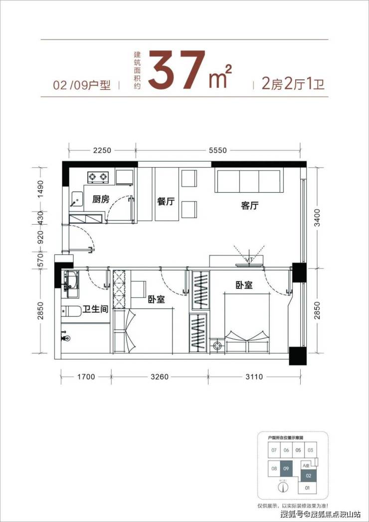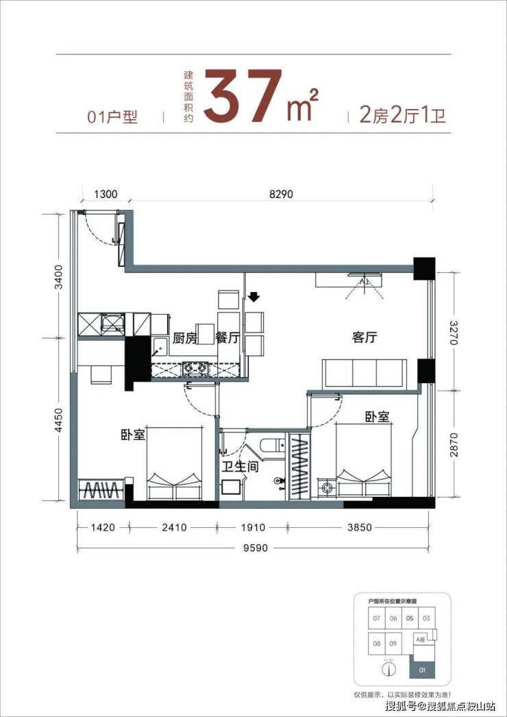 【产品面积】约37㎡小两房(实际套内使用面积接近54㎡)