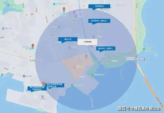 其中距离最近的是海岸学校(约307米),办学规模为54班(小学36班、初中18班)、2520个学位,据传可能是南二外集团旗下学校(具体以实际为准)。