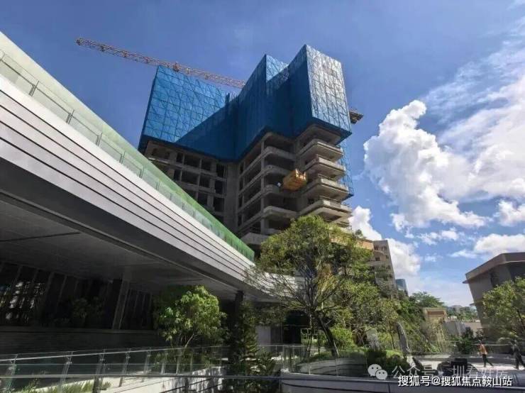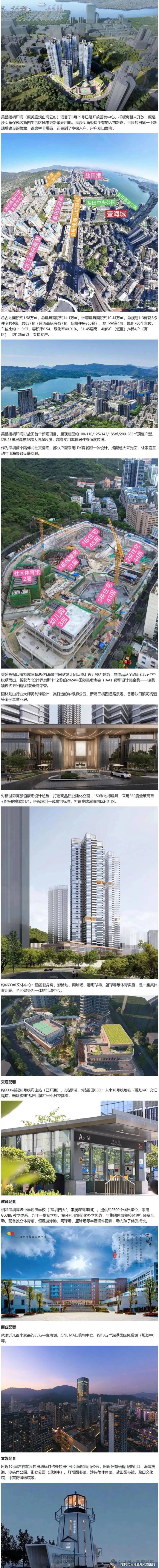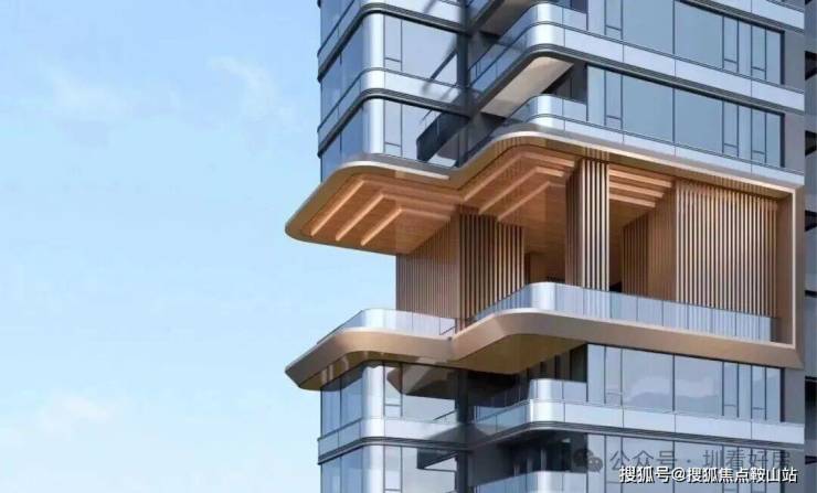 建筑特色:项目采用360度全玻璃幕+铝板的公建化立面设计,外墙玻璃采用蓝灰色双银LOW-E玻璃中空设计,铝板材料采用氟碳喷涂工艺的银灰色铝合金线脚,以横向线条装饰立面 。0.6的黄金窗墙比远超常规住宅0.3-0.5的标准 ,最大化呈现山景、海景、花园三重景观界面。约55米超宽楼间距 ,确保了良好的采光和通风效果。