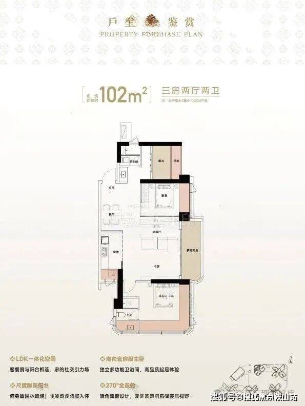 102㎡的3房2厅2卫,折后总价431-453万/套,单价4.21-4.45万/㎡。