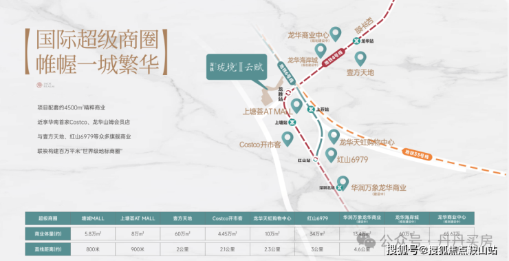 具体来看,壹方天地商业体量约60万㎡,直线距离约2公里;Costco开市客约4.45万㎡,距离约2.1公里;红山6979约34万㎡,距离约3公里。此外,龙华海岸城(规划建设中)约60万㎡、龙华商业中心(规划建设中)约65.67万㎡,未来将进一步提升区域商业能级。