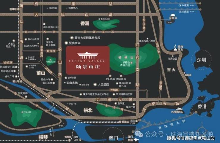 5min接驳前山轻轨站与前山立交,前山轻轨站上连广佛、下通横琴、金湾机场;前山立交,左通金湾斗门、右通吉大、唐家;