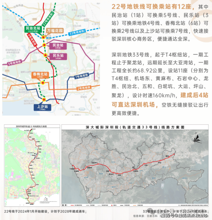 项目距地铁口仅约200米,乘坐地铁22号线(在建中,预计2028年通车)南行,5站到福田,9站直达福田上沙站,还可便捷换乘5号线、4号线、2号线、7号线,北行直抵东莞;乘坐地铁33号线(在建中,预计2026年通车)4站可直达深圳机场