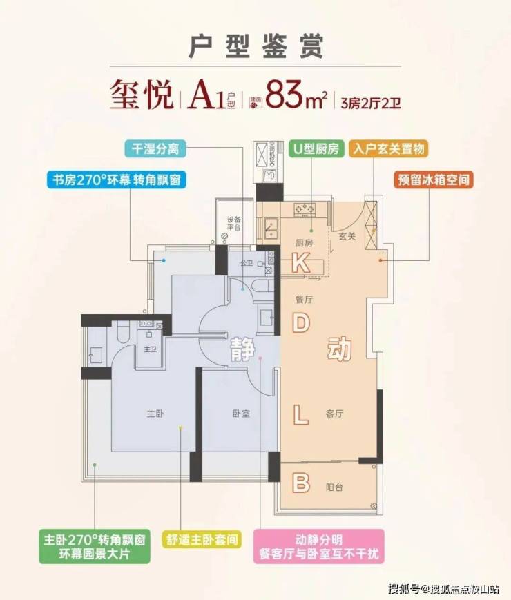 ▲83㎡-3房2厅2卫,设计的是竖厅格局,客厅3.4米开间,LDKB一体化,S墙设计预留冰箱卡槽位,动静分区,主卧270°无柱转角飘窗,分别做到了主卧16.53㎡/次卧9.62㎡/次卧6.63㎡(包含墙体飘窗),U型厨房,公卫三段式干湿分离,还带1个设备平台,得房率约100%(包含赠送),首推的1/2栋东北朝向。赠送面积约13.74㎡▼
