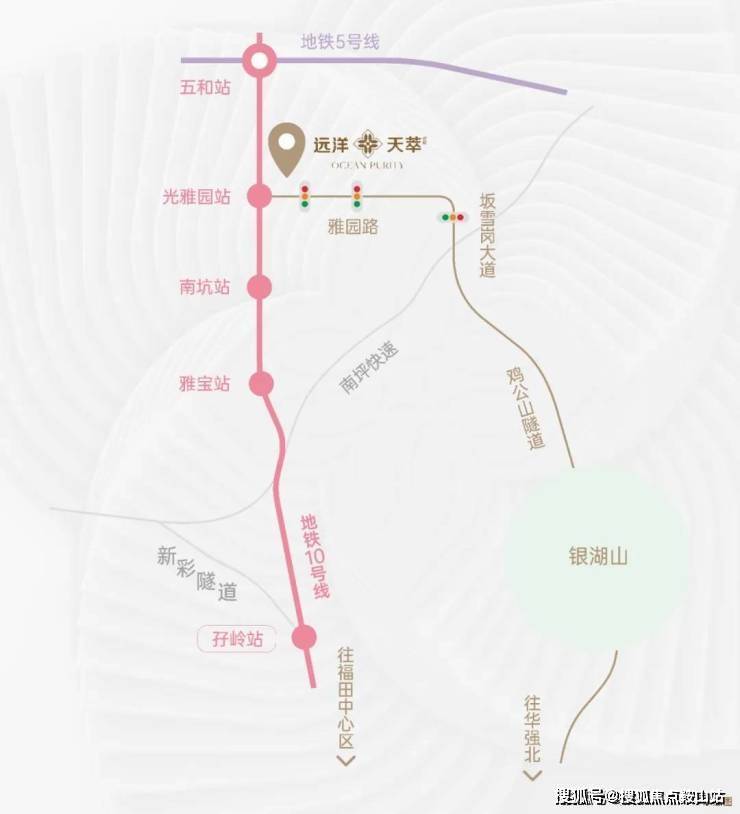 地铁配套:远洋天萃家门口就是10号地铁线“光雅园站”B出口,小区地下室直通地铁站,1站到五和枢纽站可换乘5号地铁线/深大城际,3站可到龙华深圳北站,3站到福田、4站到南山。