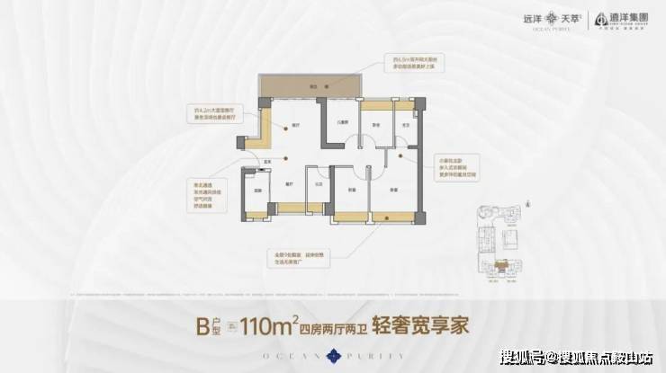 128㎡的4房2厅2卫,设计的是横厅南北通透格局,客餐厅6.5米开间,进门户玄关,LDKB一体化,客厅连接次卧出6.1米长的大阳台,主卧大套间设计,全屋8处飘窗,U型厨房,卫生间干湿分离,得房率约72.16%(不含赠送),阳台主朝南向。🐎广州远洋天萃【售楼处电话】✅ 400-856-3771⭕(已认证)🎥❄️❇❇
