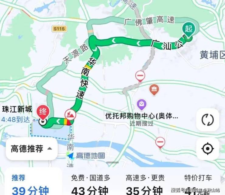 自驾去往珠江新城:出小区上广汕公路,再转华南快速,再上黄埔大道,全程24公里,耗时39分钟左右。