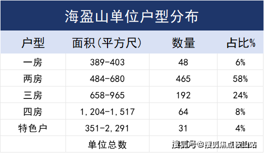 标准单位实用面积:标准户共有416伙,1房共48户实用面积介乎389-403呎;2房共272户实用面积介乎486-680呎;3房共96户实用面积介乎658-915呎