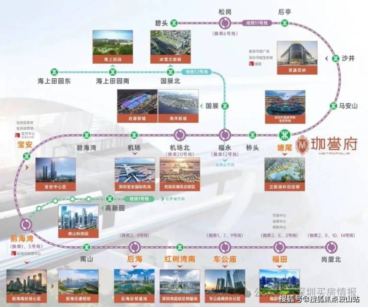 直连地铁11号线塘尾站,6站到宝中、7站到前海、9站到后海、11站到车公庙,便捷通达南山、福田核心区域。
