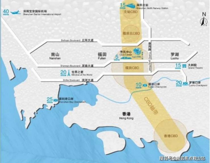无缝连接深、港、澳一一至深圳宝安国际机场30分钟车程,至高铁福田站15分钟车程,至皇岗口岸10分钟车程。
