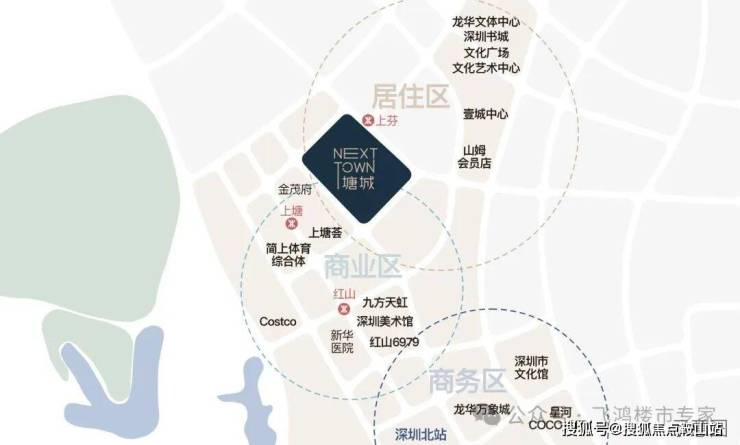 日常生活配套方面:项目自带约5.8万㎡美学商业,规划屋顶花园、艺术市集、轻社交空间等,预计2026年开业。 距离华南首家Costco约800米,已于2025年1月开业,提供全球精选商品及生鲜食品。 龙华万象城(在建)预计2025年底开业,将引入高端百货、影院、餐饮首店。 周边还有壹方天地(深圳最大商业集群之一)、红山6979、上塘荟等商业体。