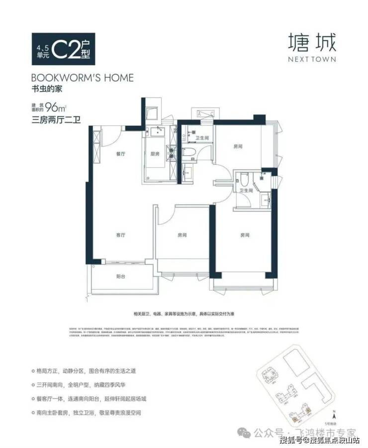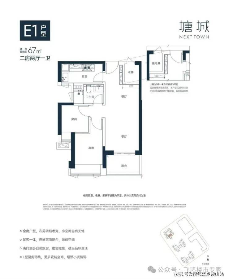 塘城壹号花园的户型设计注重实用性,主打67-125㎡的二至四房,但得房率约80%(包含赠送面积),相比市面上一些高得房率新盘存在一定差距。
