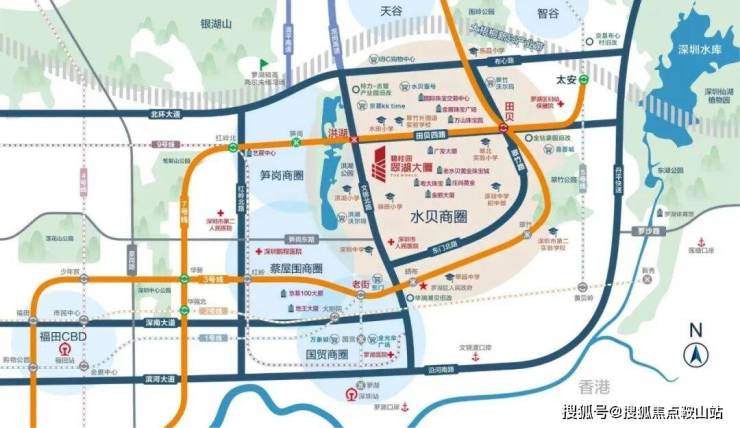翠湖大厦位于深圳罗湖田贝片区,是城市经济、文化和商业的交汇点。周边交 通干线纵横,临近地铁站点,3号线、7号线、5号线环绕,还有多条公交线路汇聚,便捷畅 达城市各处。此外,项目毗邻水贝珠宝时尚产业区,就业机会丰富,发展空间广阔。