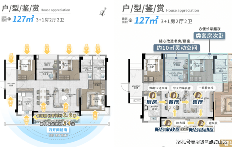 l南向景观阳台+满飘窗,约4m南向主景观阳台,房房带飘窗