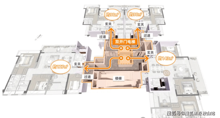 类专梯入户 | 两梯四户梯户比+双开门电梯,类专梯专户豪宅高标