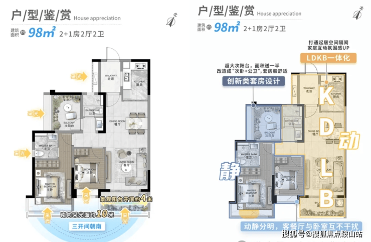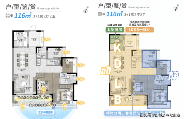 l超大方厅,动静分明,南向阳光方厅,客厅与卧室分开布置