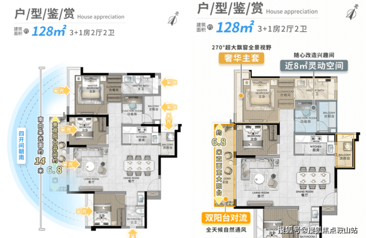 l双面景观阳台+满飘窗,约6.8m 面宽超大阳台,景观资源最大化利用