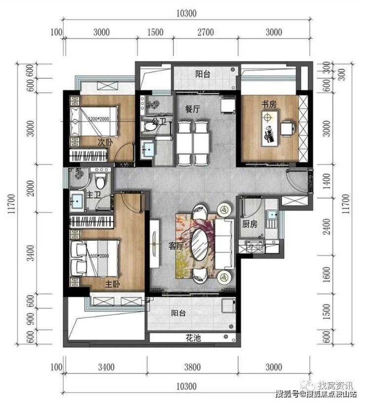 A2户型:105㎡ 阳光三房