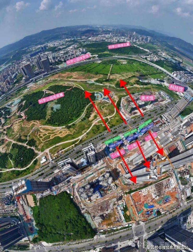 位于深圳光明区光明科学城核心区域,紧邻208万平方米的科学公园,属于光明规划中“最宜居、居住板块最大”的片区。项目北侧与科学公园仅一街之隔,东、周边市政配套规划最集中地,深圳科技馆新馆、国际美术馆等均在建设中,预计2026年前全面落成。