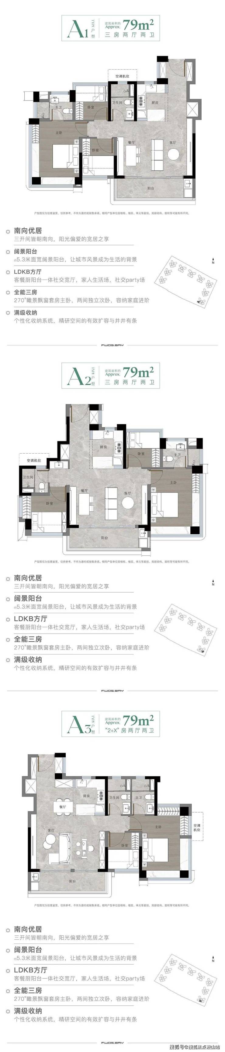 中建玖合·未来方洲的户型设计十分注重空间的合理利用与舒适度。项目首次推出的79平至142平的新规户型采用南北对流设计,并且每户均有大阳台或宽景阳台,居住体验极为舒适。79平的三房户型、95平的三房、108平四房等都具有超高的使用率,且布局合理,空间开阔,最大程度利用自然光线。此外,项目还提供竖厅与横厅的不同设计,满足不同家庭结构的需求。