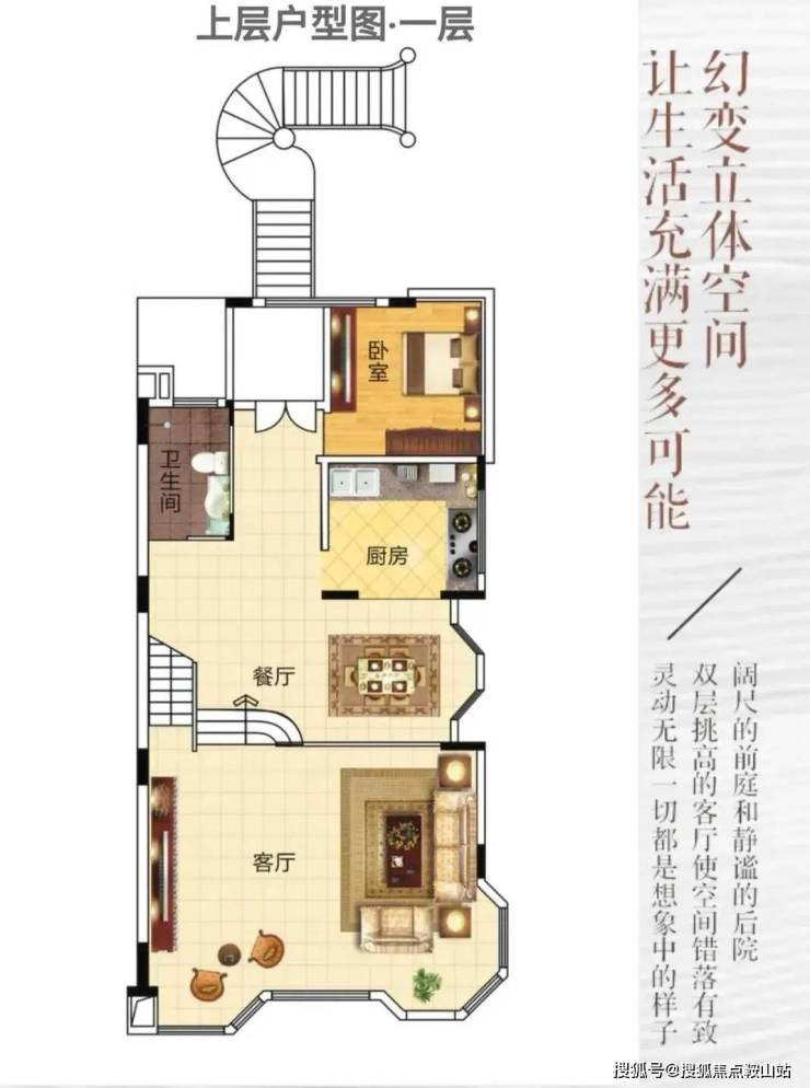 在旋转楼梯拐角处,你可以俯视一楼客厅,让你与家人朋友更容易互动,使别墅更具生活味道。