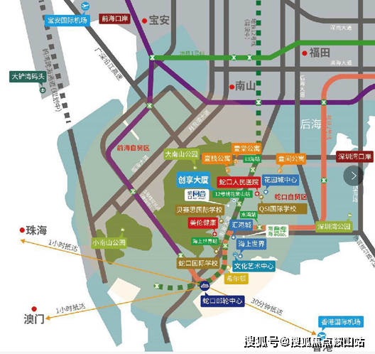 交通配套:地铁2号线水湾站、海上世界站,12号线花果山站(图工业六路);南海大道及沿江高速;邮轮母港、蛇口港、深圳湾口岸。