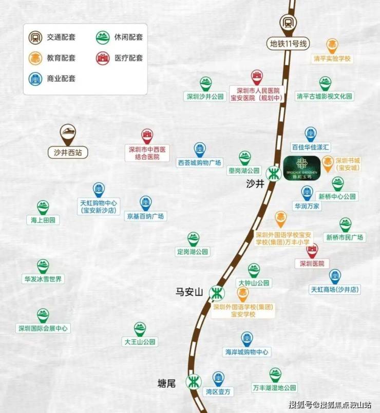 交通方面:距地铁 11 号线沙井站仅约 400 米,步行 7 分钟可达,2 站达机场东、8 站至宝中、15 站至南山高新园,通勤高效;周边广深高速、外环高速环绕,穗莞深城际沙井西站近邻,规划 18、20 号线加持,畅享大湾区 1 小时生活圈。
