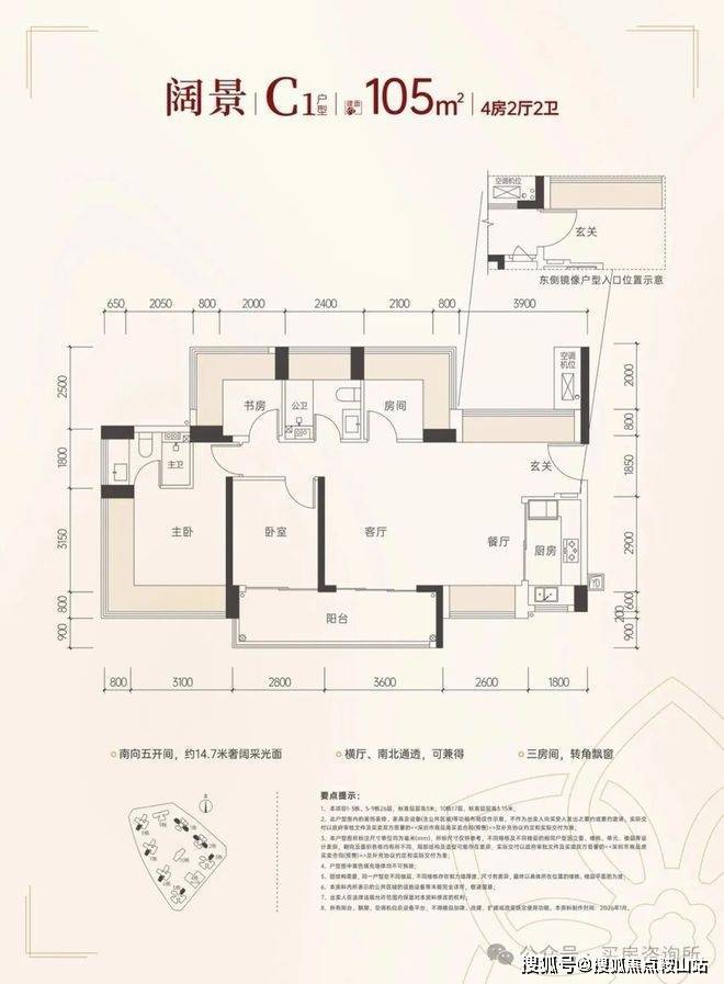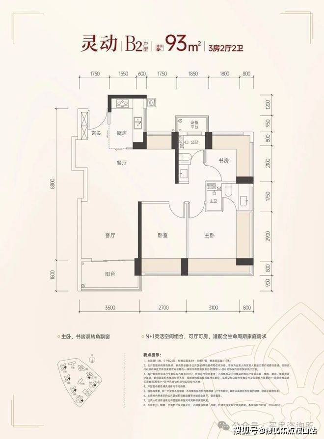 产品方面,大户型产品都用上了南北双阳台设计,主卧沿用新规270°大飘窗,连小户型儿童房也用上双飘窗,通风采光效果绝佳,预计得房率高达100%。其中93㎡可以改3+1房